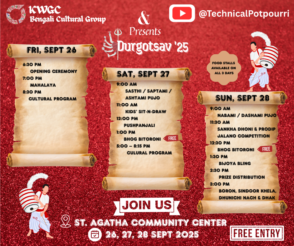 KWGC Durga Puja, the oldest in the region, is celebrating its 14th year with devotion and grandeur. This year the festival spans three days, bringing the community together with culture, rituals, and celebration.